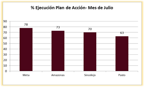 En el mes de Julio se realizaron cuatro acompañamientos al Plan de Acción en las SecretarÃas de Educación de Meta, Amazonas, Sincelejo, y Pasto.