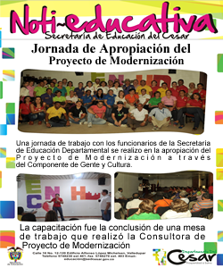 La Secretaria de Educaci贸n de Cesar, realizo una jornada de trabajo con los funcionarios de la Secretaria en torno a la apropiaci贸n del Proyecto de Modernizaci贸n a trav茅s del Componente de Gente Y Cultura.