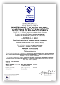 El Proyecto de Modernizaci贸n de Secretarias de Educaci贸n, quiere hacer un reconocimiento especial a la Secretaria de Educaci贸n de Ipiales, porque ingresa al grupo de las Secretarias de Educaci贸n certificadas por el ICONTEC, la Secretaria de Ipiales obtuvo los certificados de Talento Humano, Atenci贸n al Ciudadano, y Cobertura, gracias al buen desempe帽o y a la gran labor que desarrollan por mejorar la calidad de la Educaci贸n dentro de su Secretar铆a, este evento se llev贸 a cabo el d铆a 11 de abril del presente a帽o, conto con la participaci贸n de la Secretaria de Educaci贸n Maria Cristina S谩nchez Bustos, el Doctor Dar铆o Vela de los R铆os, Alcalde Municipal, una representante del Ministerio de educaci贸n Nacional, y todo el grupo que hizo posible la obtenci贸n de estas certificaciones.